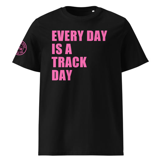 EVERY DAY IS A TRACK DAY T-Shirt – Black & White | Vibrant Pink Print | Car Meet & Track Day | Race Car Logo | DTF Print