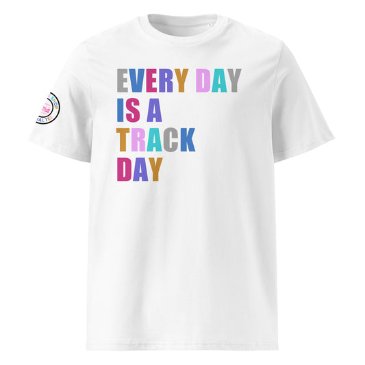 EVERY DAY IS A TRACK DAY T-Shirt – White | Car Meet & Race Day | Race Car Logo | DTF Print