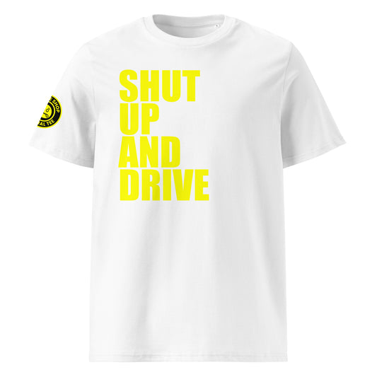 SHUT UP AND DRIVE T-Shirt – White | Car Meet Selection | Zip It Logo | DTF Print