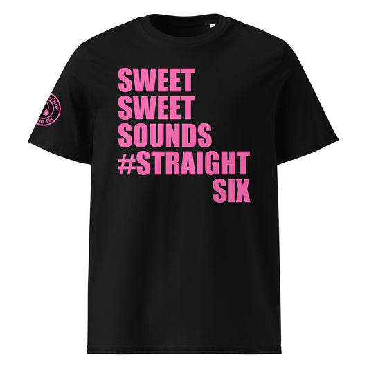 SWEET SWEET SOUNDS #STRAIGHTSIX T-Shirt – Black & White | Vibrant Pink Print | Car Meet Engine Tribute | Ear Muffs Logo | DTF Print