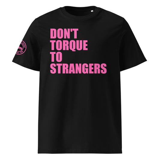 DON’T TORQUE TO STRANGERS T-Shirt – Black & White | Vibrant Pink Print | Car Meet Slogan | Nm Logo | DTF Print