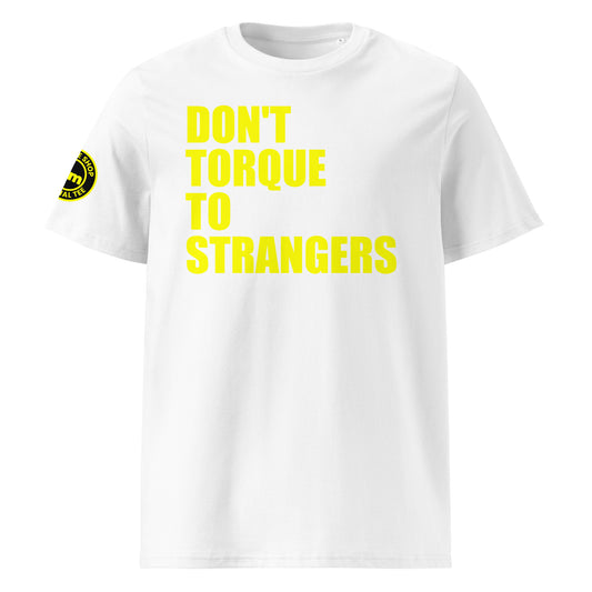 DON’T TORQUE TO STRANGERS T-Shirt – White | Car Meet Slogan Tee | Nm Logo | DTF Print