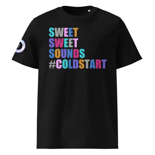 SWEET SWEET SOUNDS #COLDSTART T-Shirt – Harlequin Edition | Multi-Colour Print | Black & White | Start/Stop Logo | DTF Print