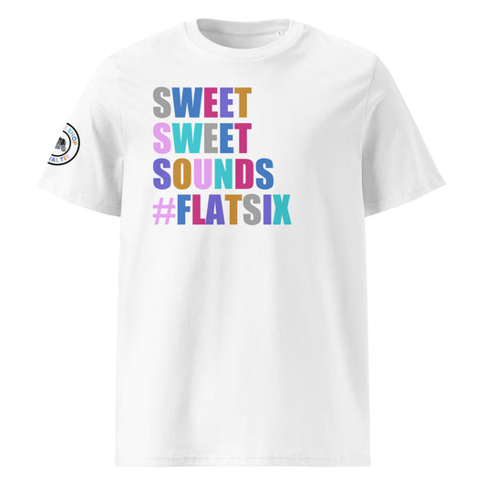SWEET SWEET SOUNDS #FLATSIX T-Shirt – Harlequin Edition | Multi-Colour Print | Black & White | Car Meet Engine Tribute | Flat Six Engine Logo | DTF Print