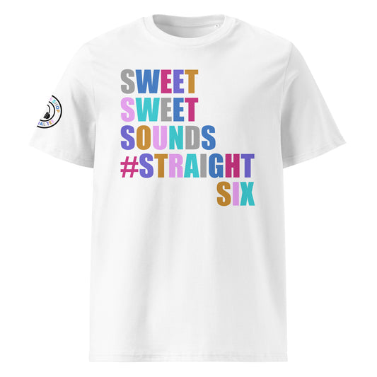SWEET SWEET SOUNDS #STRAIGHTSIX T-Shirt – Harlequin Edition | Multi-Colour Print | Black & White | Car Meet Engine Tribute | Ear Muffs Logo | DTF Print