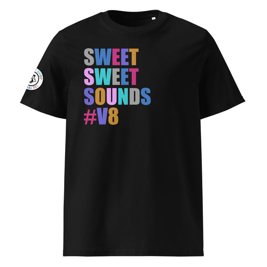 SWEET SWEET SOUNDS #V8 T-Shirt – Harlequin Edition | Multi-Colour Print | Black & White | Car Meet Engine Tribute | Engine Logo | DTF Print