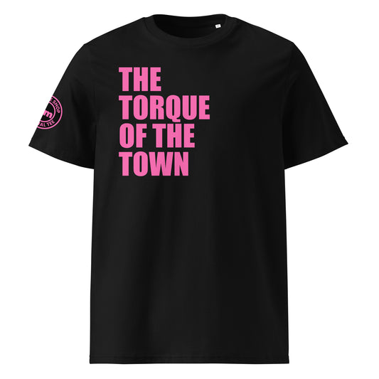 THE TORQUE OF THE TOWN T-Shirt – Black & White | Vibrant Pink Print | Car Meet Torque Slogan | DTF Print