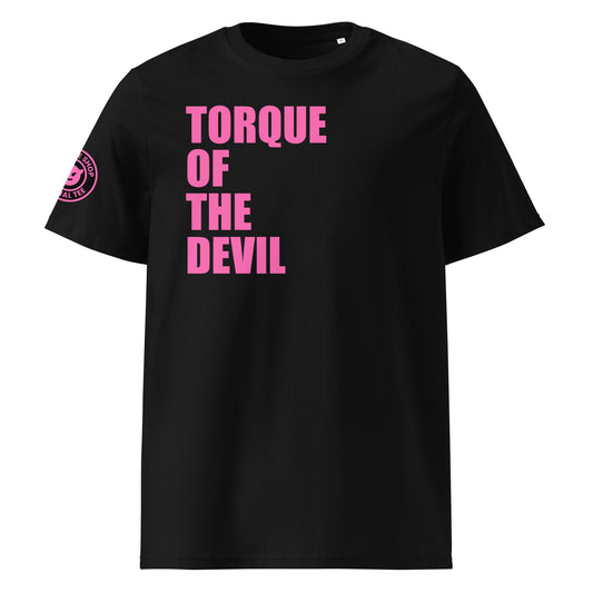 TORQUE OF THE DEVIL T-Shirt – Black & White | Vibrant Pink Print | Car Meet Slogan | Devil Logo | DTF Print